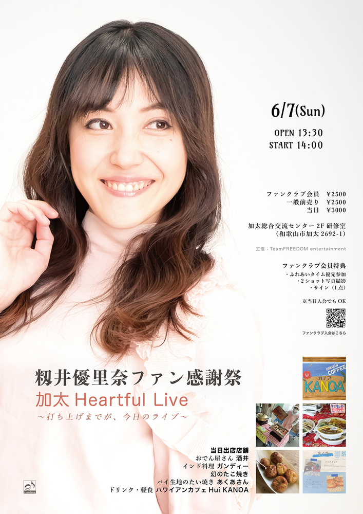 6/7(日)籾井優里奈ファン感謝祭〜加太 Heartful Live(和歌山市加太)